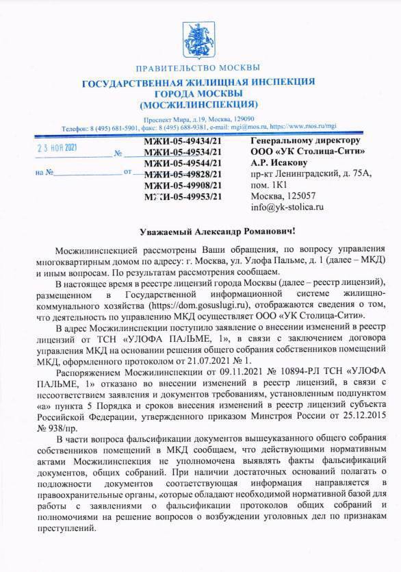 Гражданин совсем забыл о том, что 29 октября 2021г., Врио начальника Отдела МВД России района Раменки г.Москвы майор Лясова О.В. постановила о возбуждении и принятии к производству уголовного дела о фальсификации собрания собственников ЖК по созданию ТСН "Улофа Пальме,1".