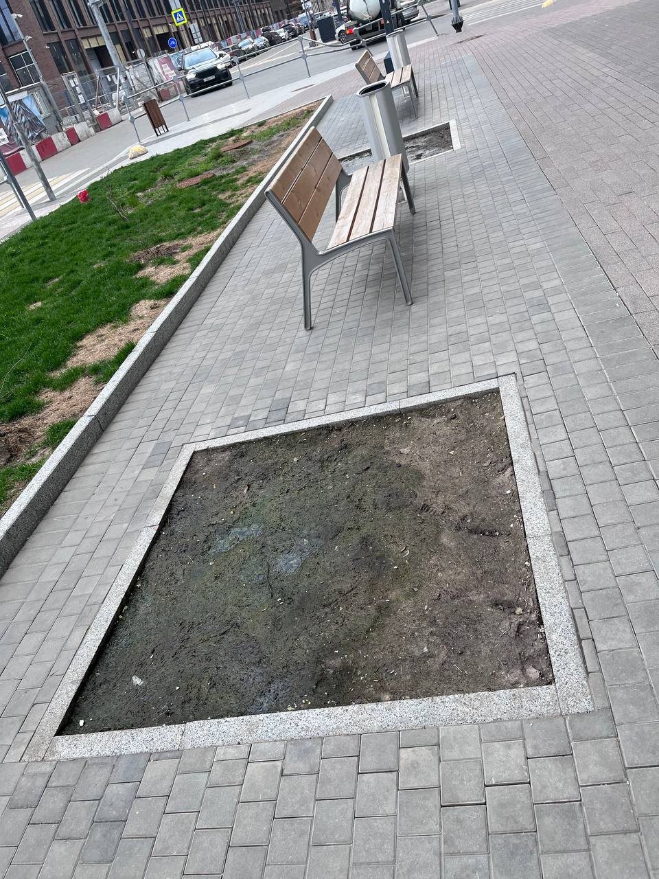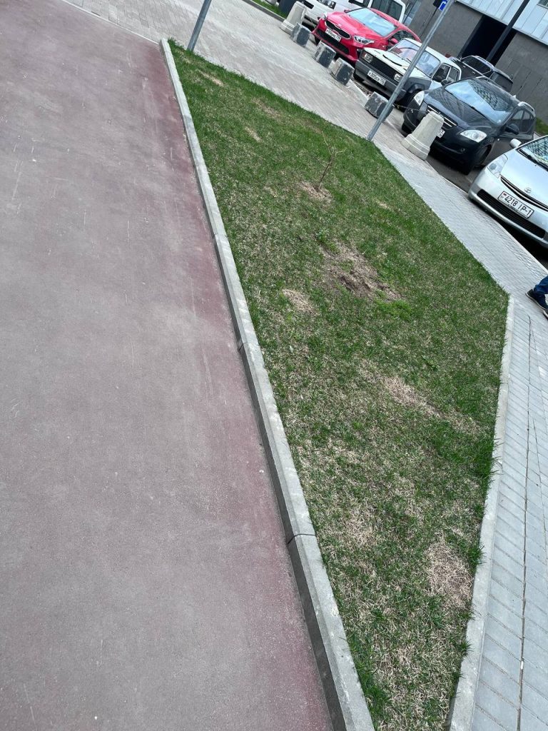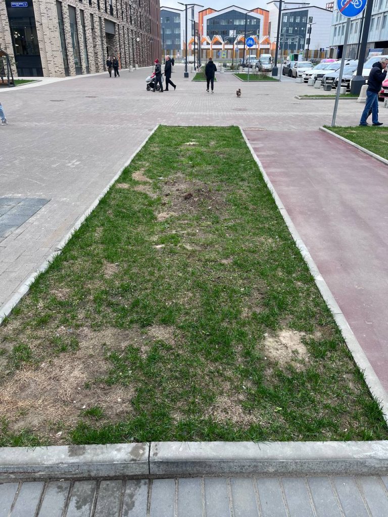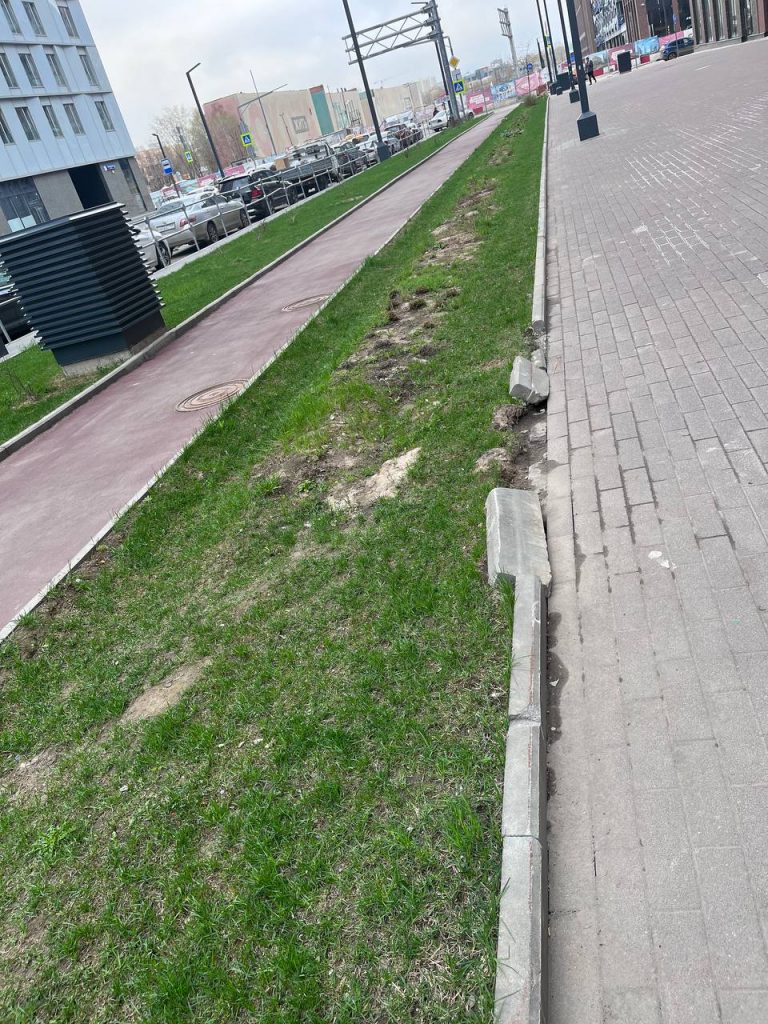 На одной клумбе вместо высоких кустарников посадили три чахлых цветка, которые возможно распустятся к сентябрю, а возможно и нет. На других клумбах по всем улицам голые поля или земля вместо газонов. Бордюры до сих пор не реставрированы.