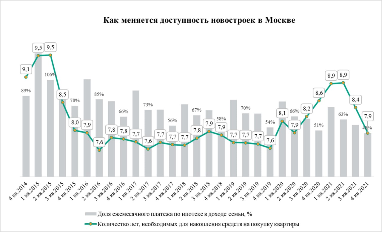 В этом случае доступность московского жилья, конечно, упала бы по итогам года и составила 8 лет и 9 месяцев.
