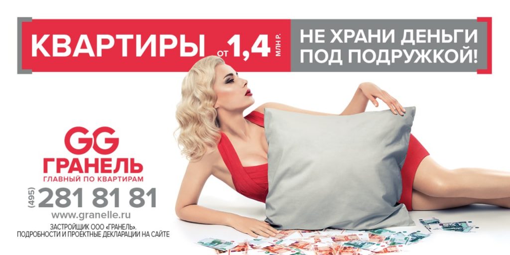 Реклама Гранель-М вызывает вопросы не только к достоверности указанной в ней информации. Девелопер использует в своих слоганах пошлые каламбуры и шутки сомнительного характера. Ранее эксперты ФАС уже обращали внимание на неэтичность наружной рекламы застройщика.