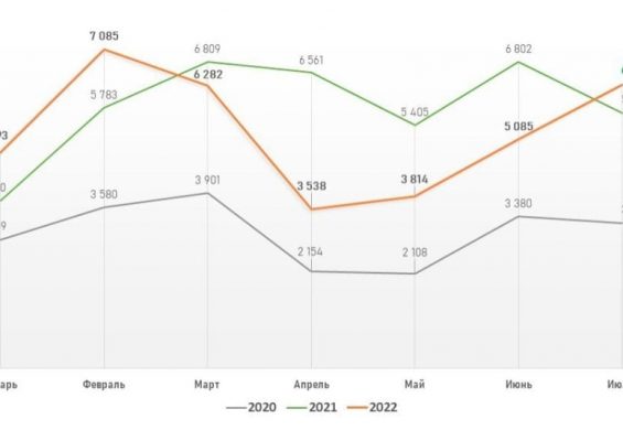 В июле 2022 года на первичном рынке Москвы зарегистрировано 6237 договоров ипотечного жилищного кредитования. Это на 23,6% больше июньского показателя (5085 договоров).