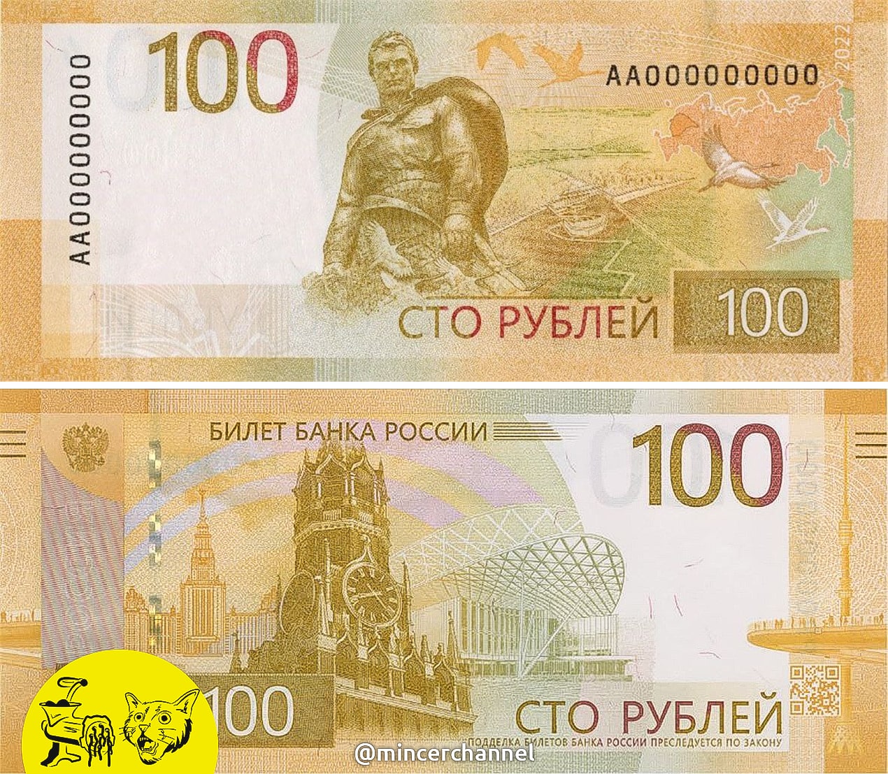ЦБ представил банкноту номиналом 100 рублей в новом дизайне. Получилось странно – стилистика как у купюры в 200 рублей («под евро»), но в патриотичной тематике и цветах, близких к дизайну прежних российских банкнот. @mincerchannel