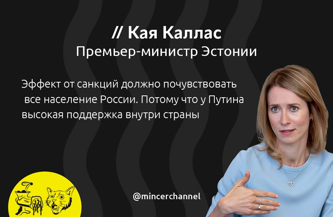 Премьер-министр Эстонии Кая Каллас заявила в интервью The Associated Press, что от санкций должен страдать каждый россиянин, потому что большинство граждан РФ поддерживают политику президента Владимира Путина.