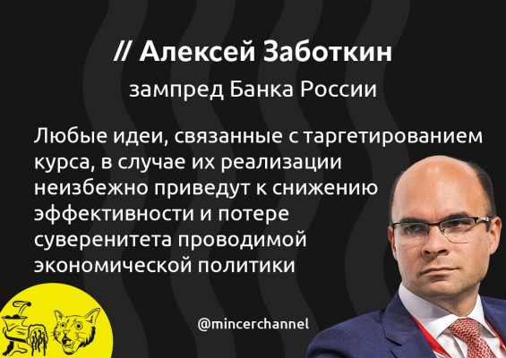 Переход к прямому таргетированию курса рубля приведет к снижению эффективности и потере суверенитета проводимой экономической политики, заявил зампред Банка России Алексей Заботкин на заседании комитета Госдумы. По его словам, «таргетирование инфляции — это наилучший способ обеспечить предсказуемую и низкую инфляцию на среднесрочном горизонте, доступность долгосрочных кредитов в экономике».