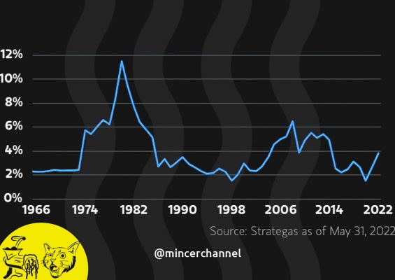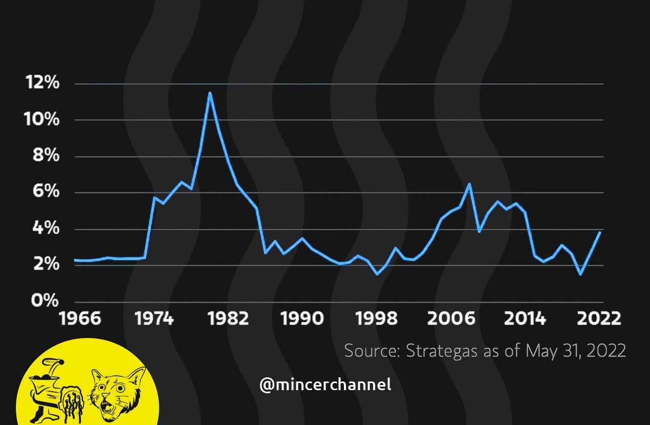 Расходы домохозяйств США на энергию в процентах от располагаемого дохода. До рекордов 70-х годов еще далеко, так что для американцев сегодняшнее время - не худшее за последние полвека. Есть еще запас для новых санкций. @mincerchannel