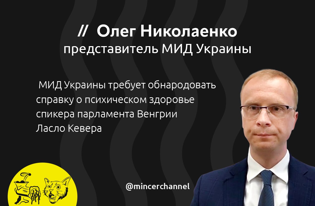 🎪 После того, как спикер парламента Венгрии от правящей партии Fidesz Ласло Кевер назвал «психической проблемой» Зеленского просьбы с угрозами к лидерами стран, чтобы те помогли с вооружением, МИД Украины потребовал обнародовать справку о психическом здоровье самого Кевера.