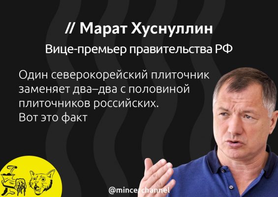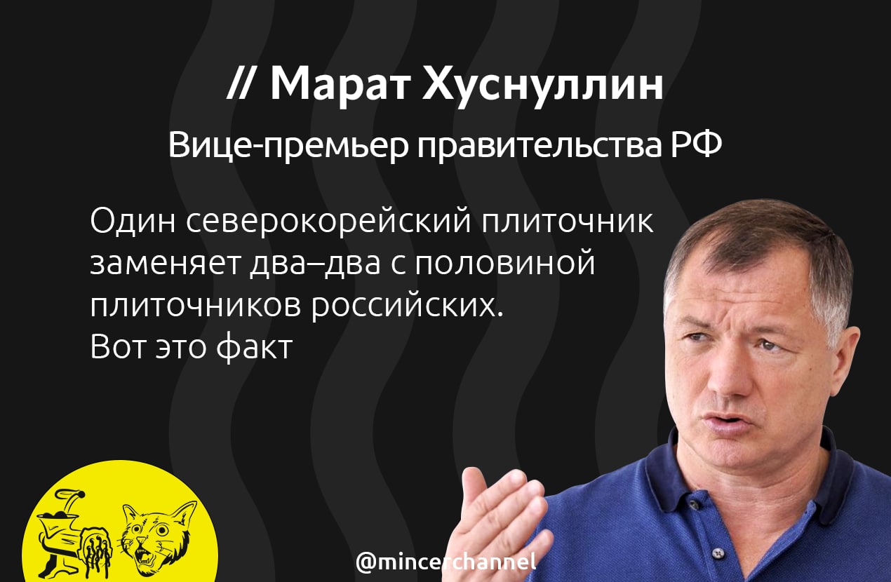 В российском правительстве недовольны производительностью россиян. Например, один плиточник из Северной Кореи может заменить двух российских рабочих той же специальности. А то и двух с половиной! @mincerchannel