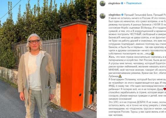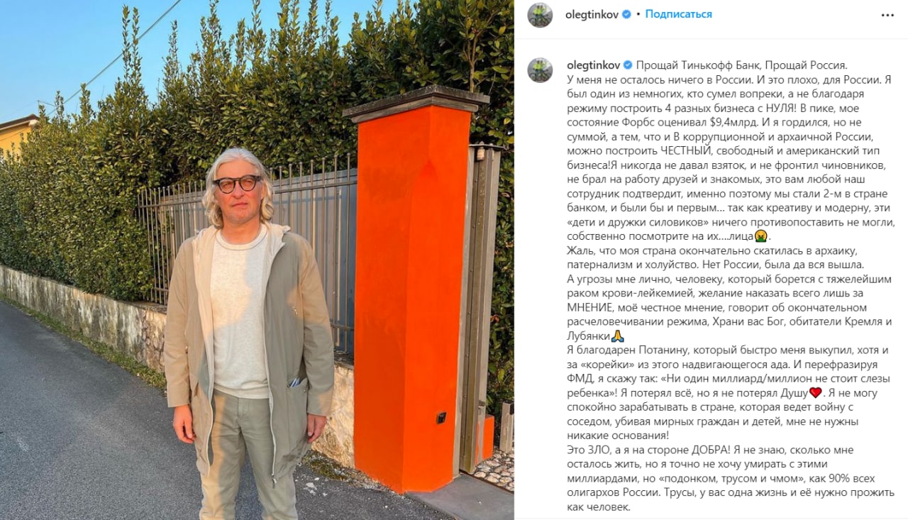 Олег Тиньков попрощался со своим бывшим банком и Россией. Уверен, что России без него теперь будет плохо. @mincerchannel