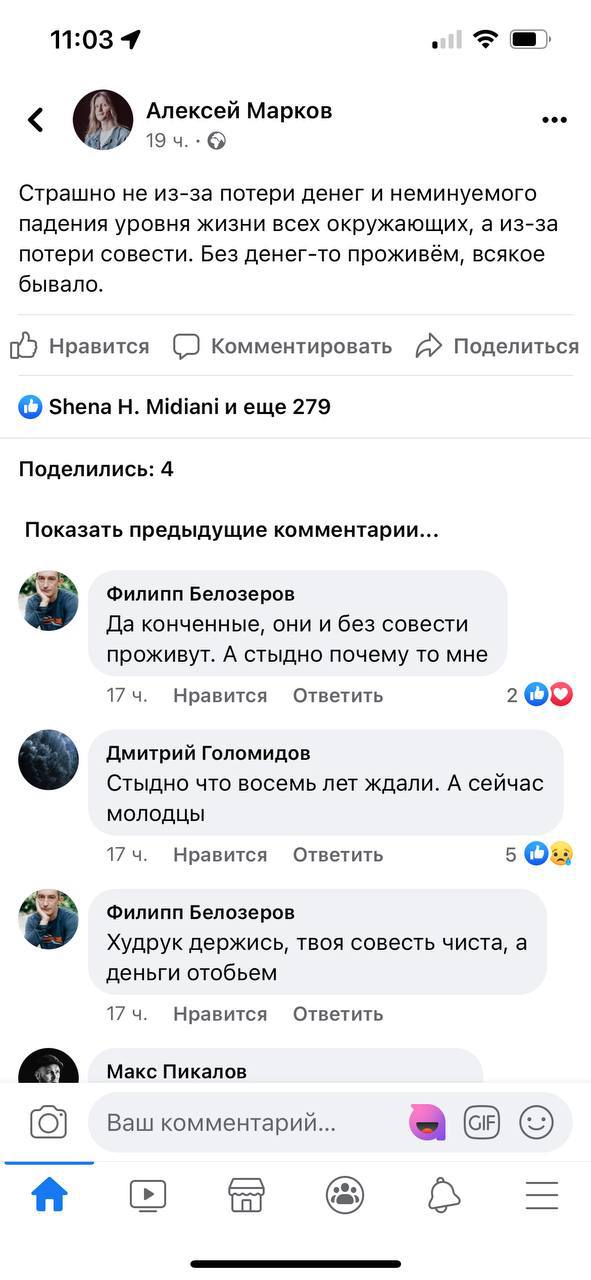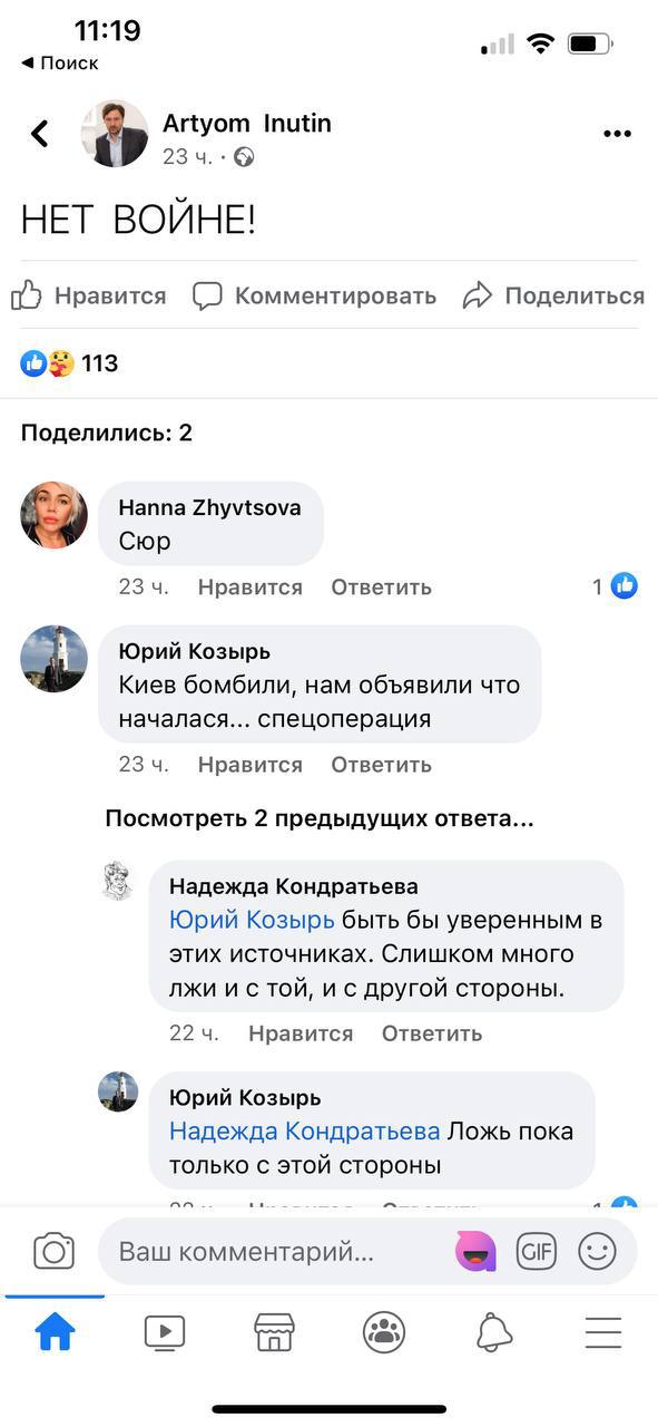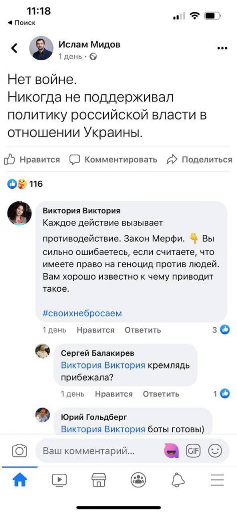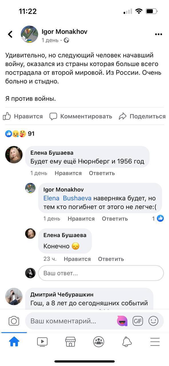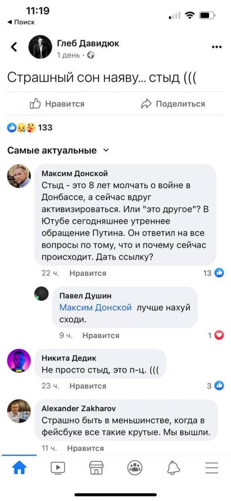 И ладно, когда просто пишут про мир и говорят о том, что не хотят войны, но многие из них поддерживают идеи Дынина и Кима, также рассуждая о том, что им «стыдно быть русскими».