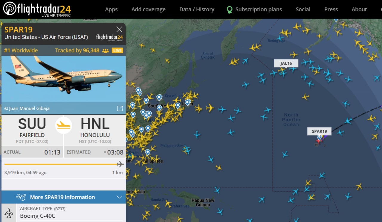 🇨🇳 Почти 100 тысяч человек наблюдают за самолетом спикера Палаты представителей Конгресса США Нэнси Пелоси. Сейчас самолёт находится в небе над Тихим океаном, готовится к посадке в Гонолулу.