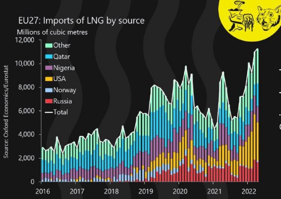 Европа хочет отказаться от трубопроводного российского газа и в тоже время шизофренически боится, что завтра «Газпром» не возобновит поставки по «Северному потоку». Вчера даже Путин пытался их успокоить – поставки будут, но в объеме по состоянию на 11 июля, то есть до отключения трубопровода на плановый техосмотр.