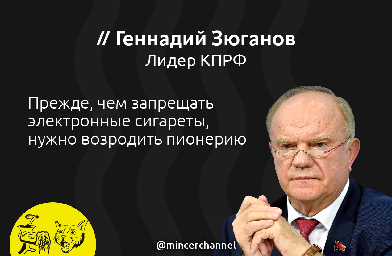 Лидер коммунистов Геннадий Зюганов заявил, что сначала надо возродить пионеров, и только потом запрещать электронные сигареты.
