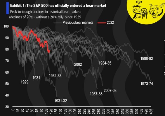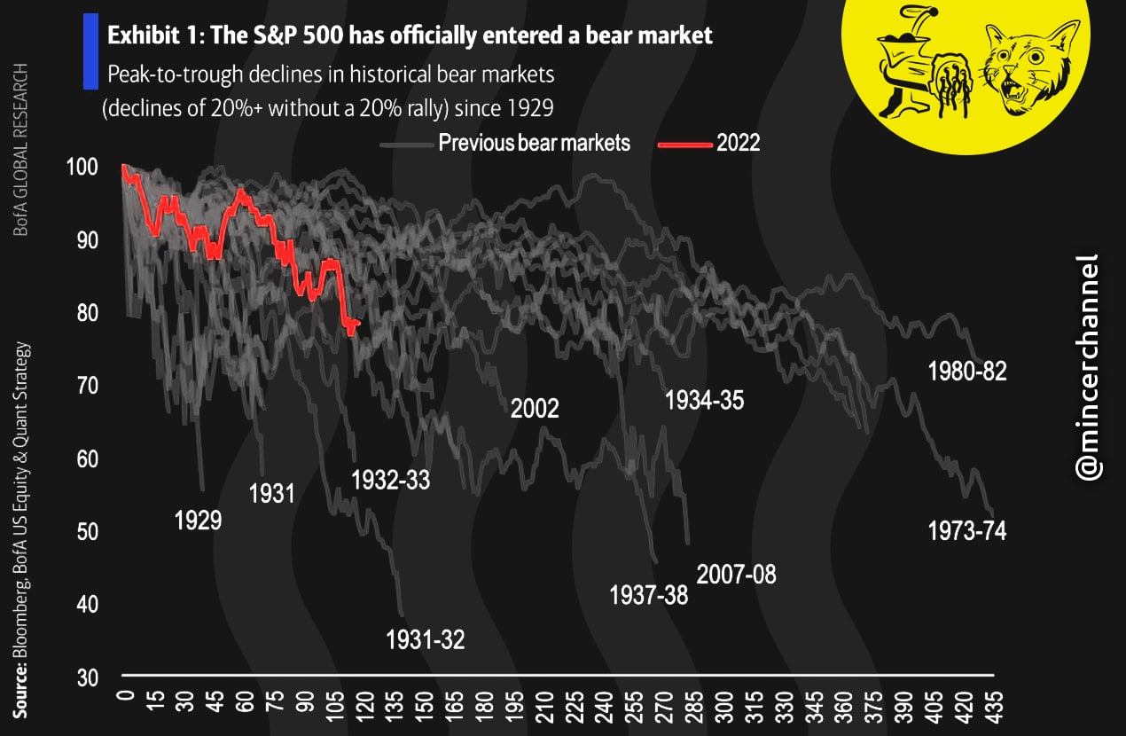 Сравнение медвежьих циклов S&P500 за последние 100 лет. Нынешний спад идет по сценарию биржевого краха 1937-1938 гг. @mincerchannel
