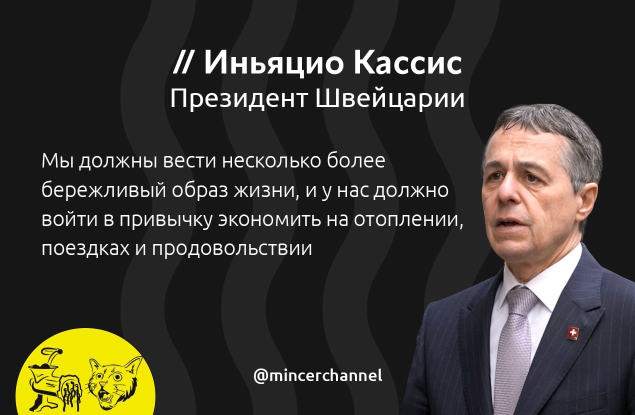 В Швейцарии граждан страны призвали экономить. А то ведь привыкли жить хорошо, а теперь надо просто меньше кушать и путешествовать, а больше мерзнуть и экономить. Но не просто так, а во благо европейских идеалов. @mincerchannel