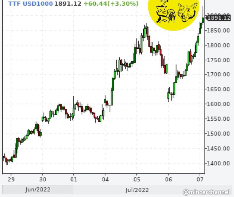 Стоимость газа на бирже ICE Futures впервые с марта превысила $1900 за 1 тыс. кубометров. @mincerchannel