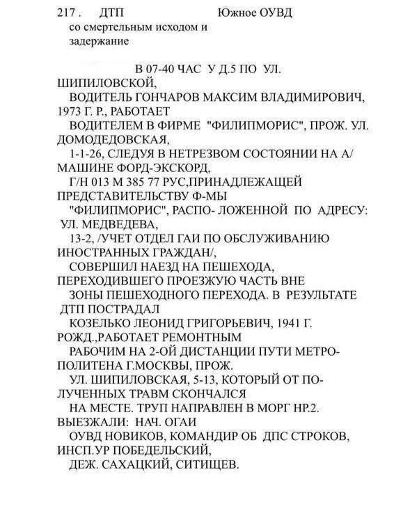 Выяснилось, что генеральный директор «Холсим РУС» Максим Гончаров сбил человека. Тогда он работал простым водителем в табачной компании «Филипп Моррис Россия». Ситуация усложняется тем, что пострадавший погиб, а Гончаров был пьян.