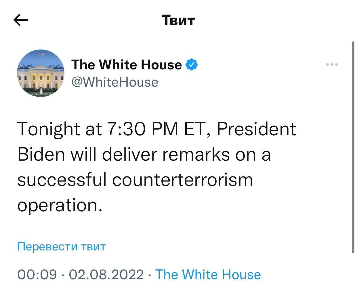 Белый дом обещает специальное заявление Байдена об успешной антитерростической операции.