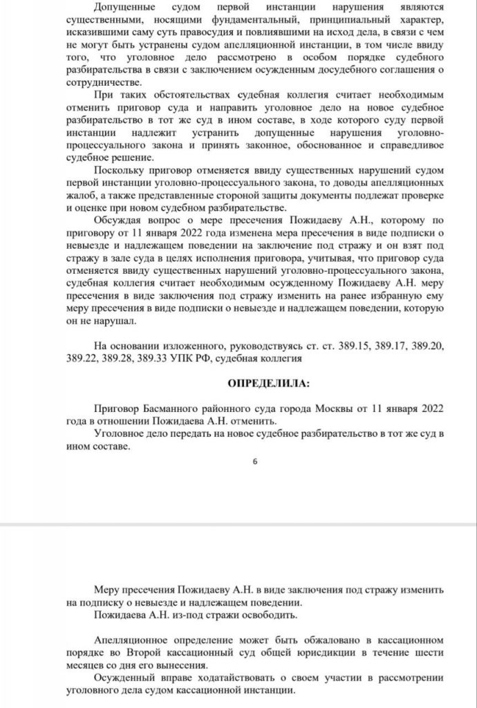 Таким образом, вывод суда первой инстанции о согласии Пожидаева с предъявленным обвинением не соответствует фактическим обстоятельствам дела.