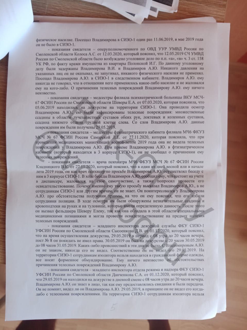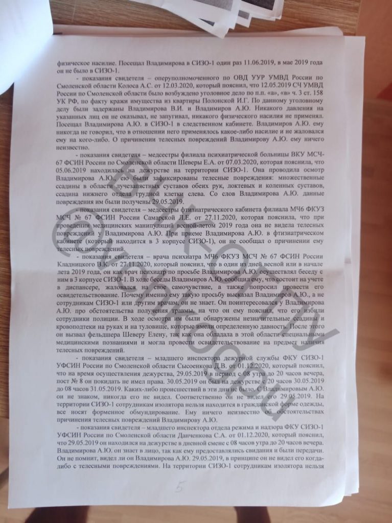 В итоге ГСУ СКР РФ по Смоленской области возбудило уголовное дело по факту причинения телесных повреждений Алексею Владимирову. На допросах Полонский называл мероприятия с Владимировой «личным приемом» в стенах СИЗО. А вот посещение Алексея категорически отрицал.