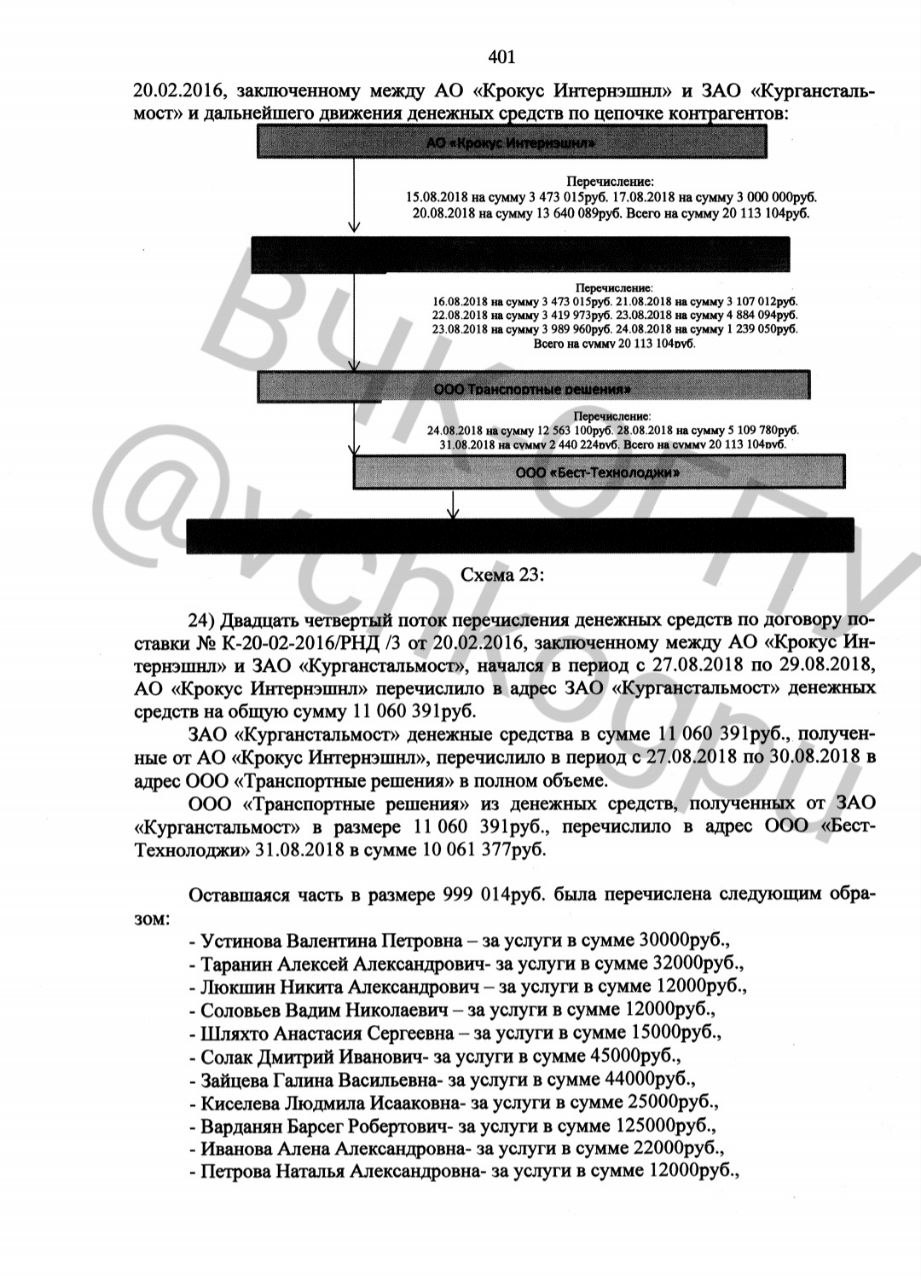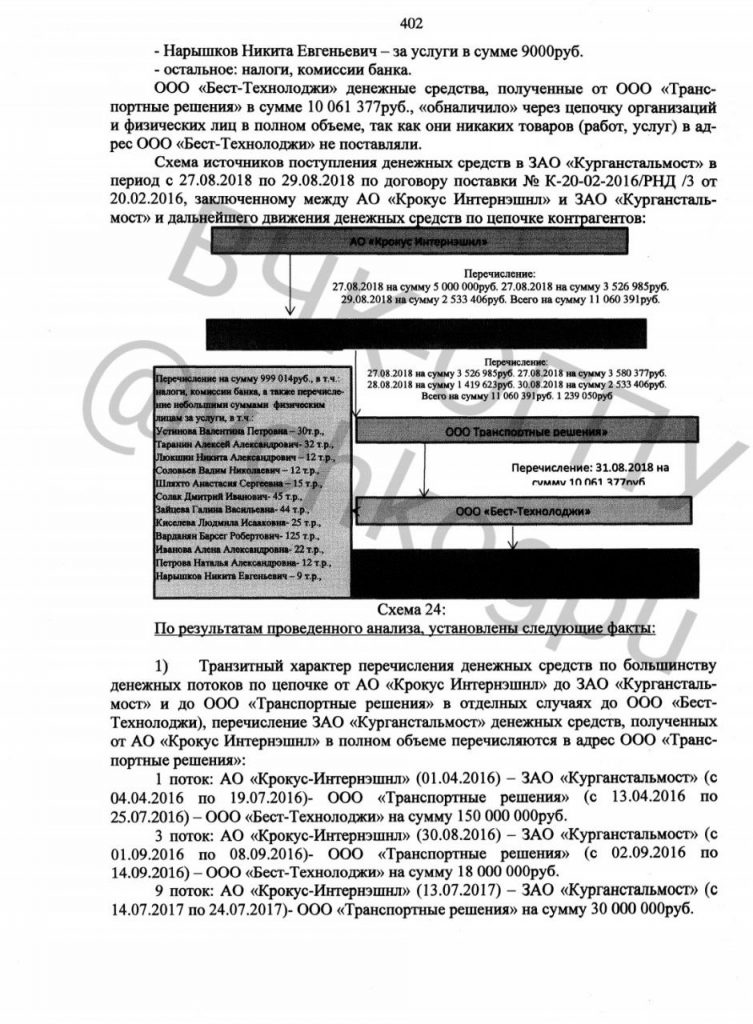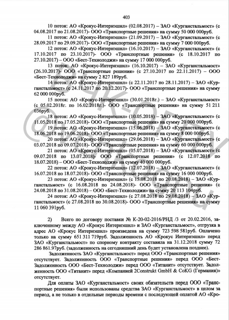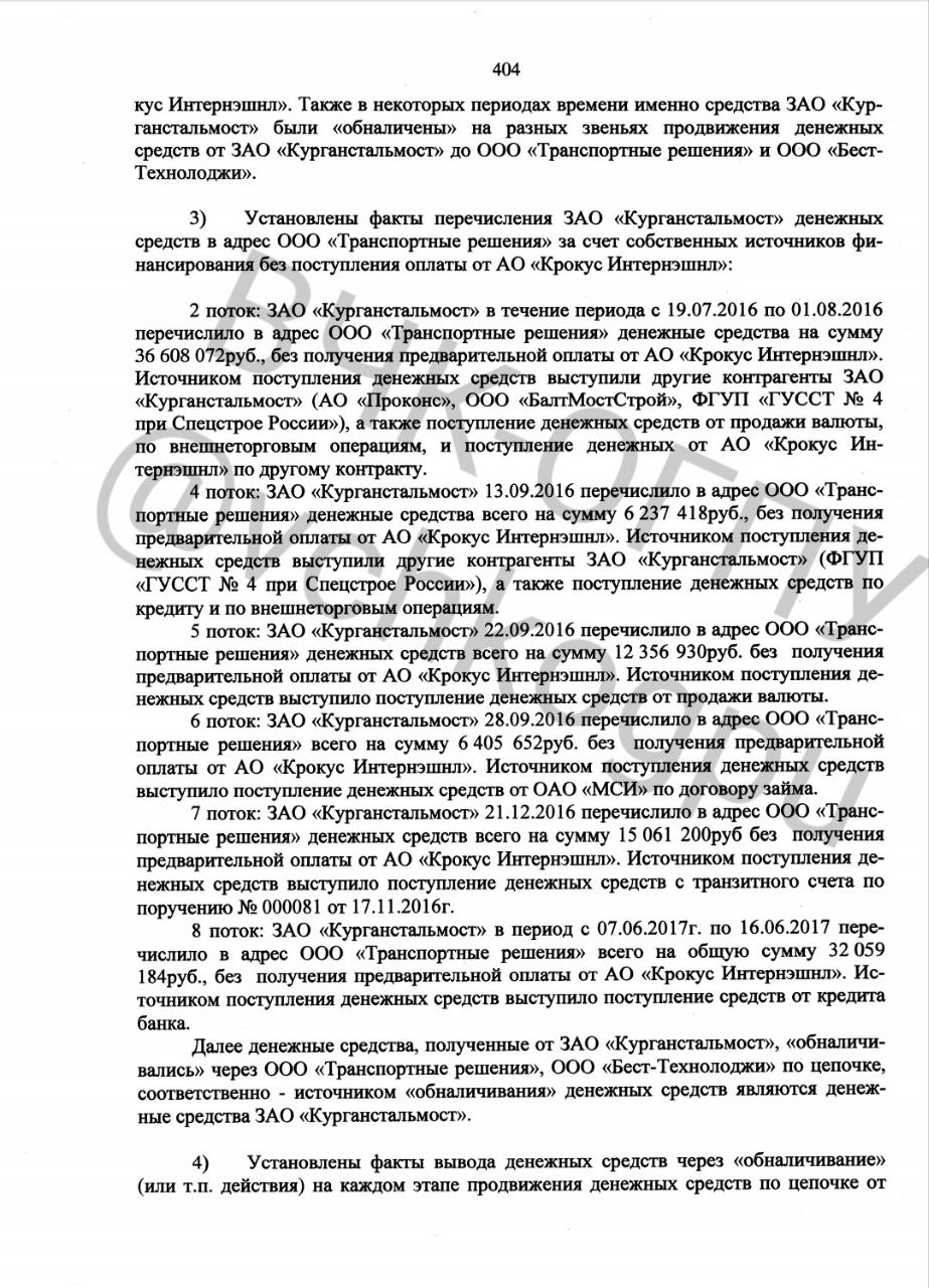 В результате проведённой ИФНС России по г. Кургану в отношении ЗАО «Курганстальмост» (ИНН 4501001235) выездной налоговой проверки 10.08.2021 года вскрылся факт обналичивания денежных средств от гос.контракта от Мин.спорта, а именно тендера на строительство Ростов-Арена. Он был реализован АО «Крокус Интернэшнл» (ИНН 7728115183), которая принадлежит господину Агарарову, на сумму свыше 700.000.000 миллионов рублей при закупке мембраны PES . Также инспекцией установлены факты, как минимум 13 эпизодов обналичивания денежных средств на сумму превышающую 1 млрд. рублей через «ведение» хозяйственной деятельности между АО «Крокус Интернэшнл» и ЗАО «Курганстальмост».