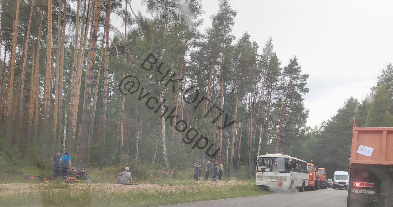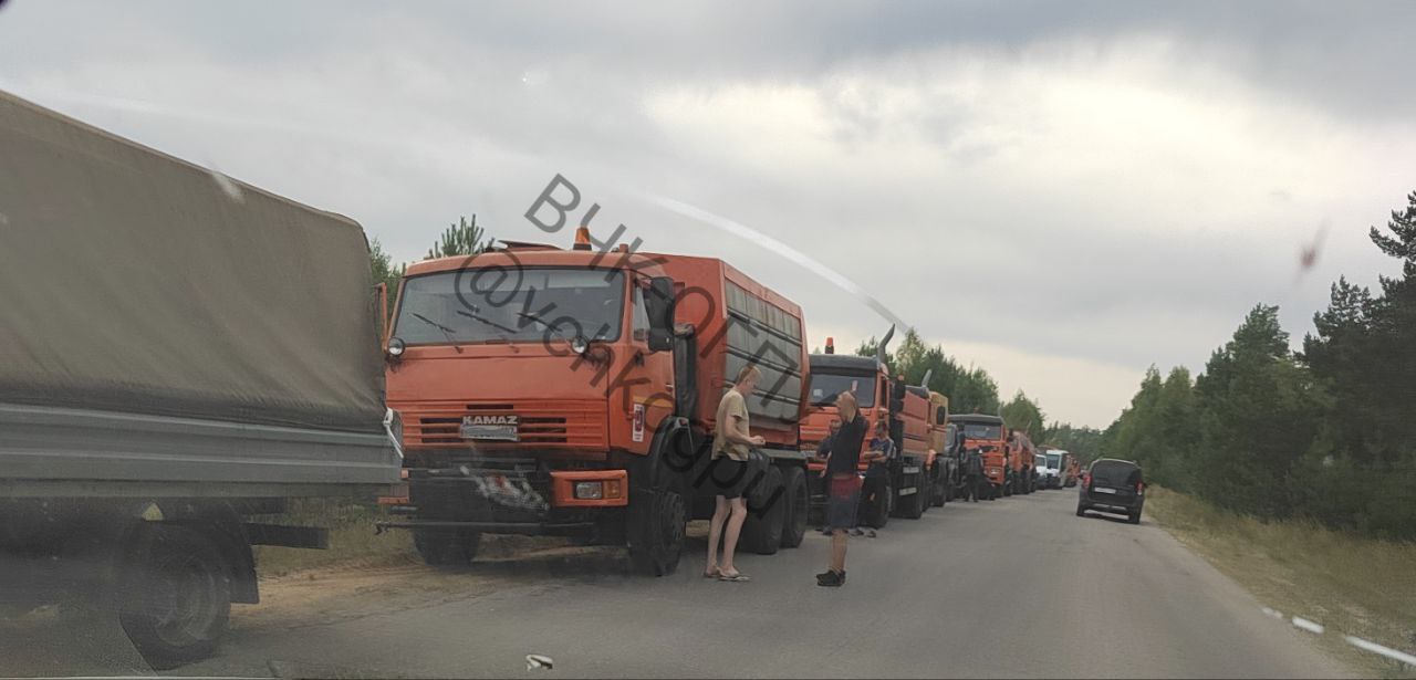 Гигантские колонны тянулись из Москвы с ночи и по прибытию образовались пробки из техники...