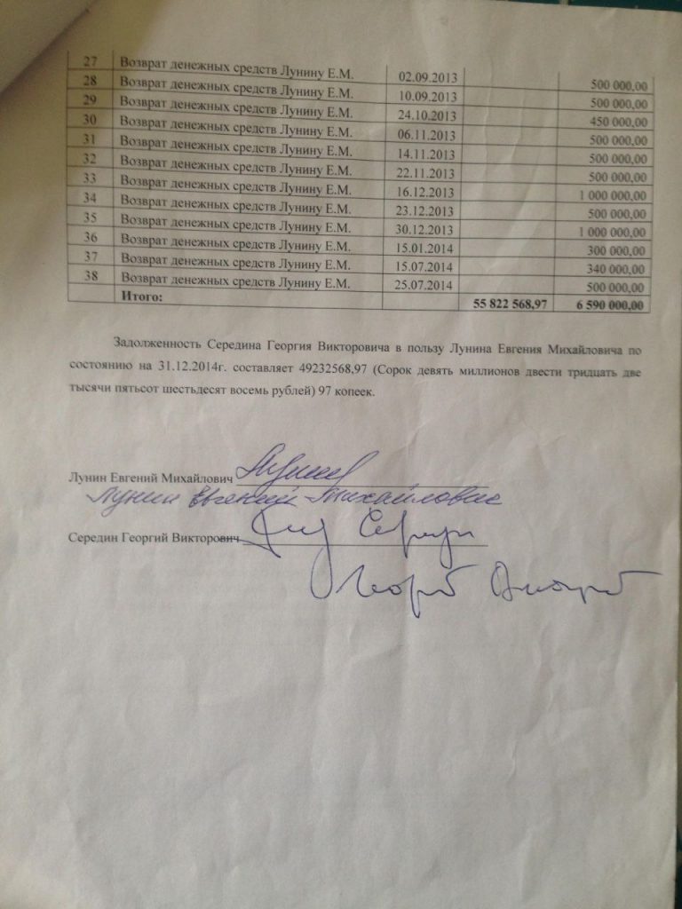 Друг осуждённого на 4 года серого кардинала г. Новороссийска Романа Корсуворова, депутат - миллиардер Георгий Середин ( оба на фото с краю). Не собирается возвращать долг почти в миллион долларов. Такую сумму единоросс занял у известного художника и мецената Евгения Лунина, который скончался из за болезни. Депутат Середин решил не возвращать долг вдове и детям. Помогает в этом деле народному избраннику судебный пристав Сербат Наталья Николаевна.
