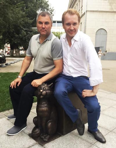 Нежность с уютом между гомо-спикером ГД Вячеславом Володиным и его любимкой, актёром Евгением Мироновым. Мужчины брезгуют телами женщин. Рожают от сур матерей, юзают друг друга и фитнес-тренера Артёма Кшнясева. Когда Миронов пикнул против СВО, Володин переговорил с артистом по-мужски, как гей с геем. Евгений сразу скатал в Мариуполь и там покаялся.