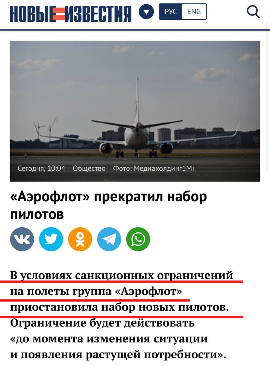 Ещё вчера Росстат заявлял о сокращении уровня безработицы, а уже сегодня «Аэрофлот» снова его поднял - авиакомпания больше не набирает пилотов. Да и зачем, если летатать всё равно некуда? От окна в Европу, которое обещали не закрывать, осталась только приоткрытая форточка.