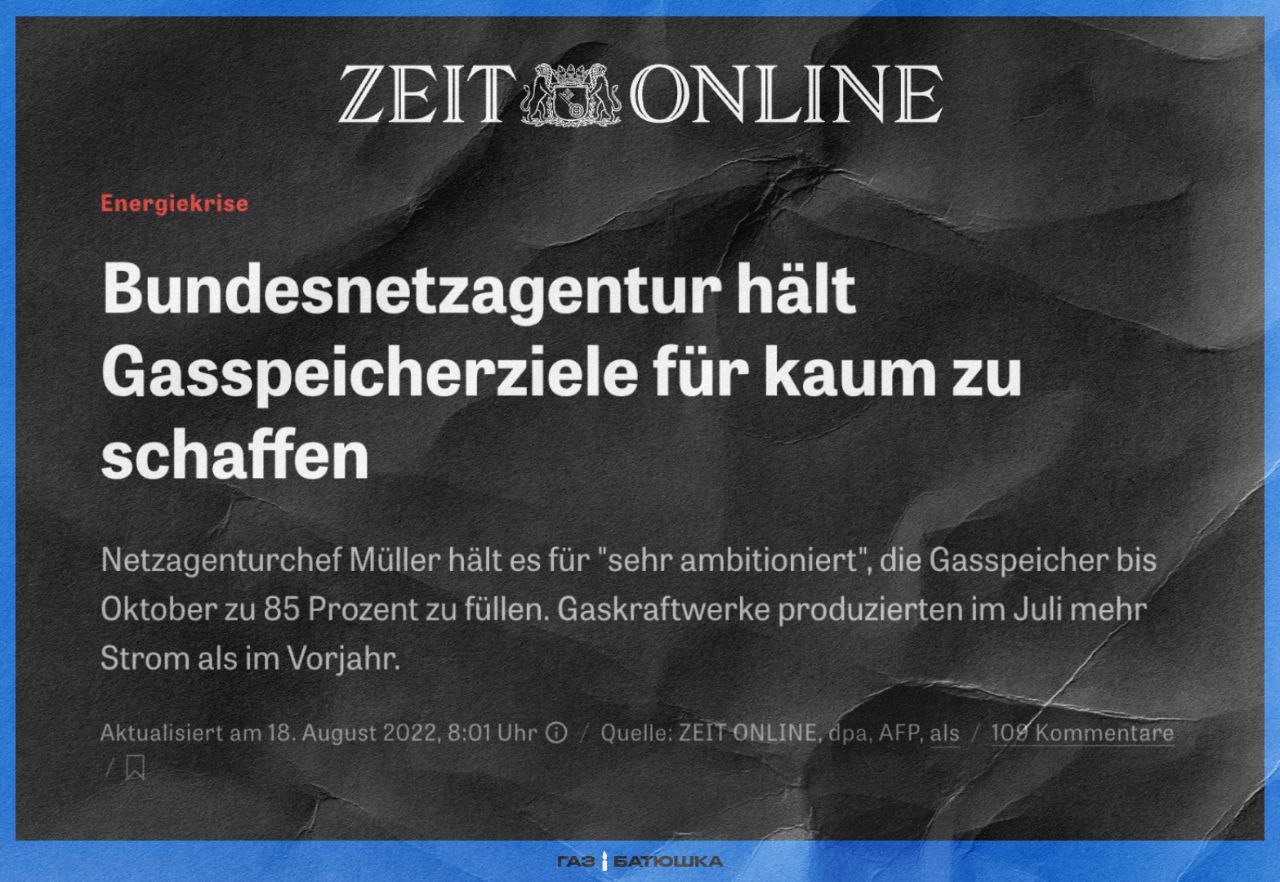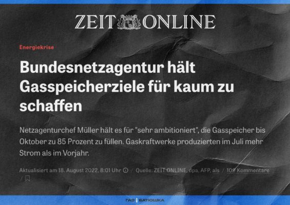 Про словам Хабека, газовые хранилища в Германии в настоящее время заполнены чуть менее чем на 83%. В начале сентября он должен был достичь отметки в 85%, которая фактически была запланирована только на начало октября. #ТАМПИШУТ