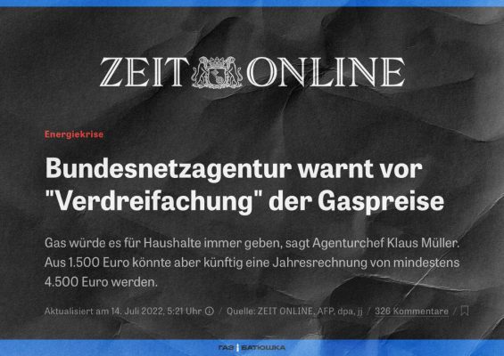 По словам Мюллера, «абсолютно реально», что клиенты, которые в настоящее время платят 1500 евро в год за газ, в будущем будут отдавать 4500 евро и более. Теперь людям нужно будет позаботиться о себе - и технически, и финансово, - напомнил глава сетевого агента.